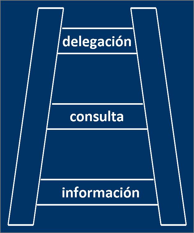 Lo característico de este escalón es que distribuye una parte del poder, siguiendo un modelo comunicativo bidireccional; esto es, se establece una relación de conversación.